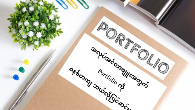ကိုယ့်ရဲ့ Career တစ်လျှောက် အကောင်းဆုံး အစိတ်အပိုင်းတွေကို စုစည်းထားတဲ့ အကောင်းဆုံးပြကွက်များလို့ မြင်ကြည့်လိုက်ပါ။ ကိုယ့်ရဲ့ ဂုဏ်အယူရဆုံး အောင် မြင်မှုတွေကို တစ်ကမ္ဘာလုံး မြင်အောင် ချပြထားတာမျိုးပေါ့။ ကိုယ့်မှာရှိတဲ့ ကျွမ်းကျင်မှု၊ ပညာအရည်အချင်း၊ အတွေ့အကြုံ၊ သင်တန်းများနဲ့ အောင်မြင်မှုတွေကို လက်တွေ့သာဓကတွေနဲ့တကွ စနစ်တကျ စုစည်းထားတာကို Portfolio လို့ ခေါ်ပါတယ်။ဒါဟာ အင်တာဗျူးမှာ ကိုယ့်ကို အမှတ်သာစေပါတယ်။ ဘာလို့လဲဆိုတော့ ကိုယ်ဘာတွေလုပ်နိုင်တယ်ဆိုတာကို ပါးစပ်နဲ့တင် ပြောနေတာမဟုတ်ဘဲ အထောက်အထားတွေနဲ့ သေသေသပ်သပ် ပြသနိုင်လို့ ဖြစ်ပါတယ်။