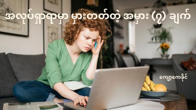 အလုပ်ရှာရင်းနဲ့ ဘာမှထူးမလာတဲ့အခါ စိတ်ပျက်ဖို့ကောင်းသလို ကိုယ့်ကိုယ်ကိုယ် ယုံကြည်မှုလည်း ကျဆင်းလာတတ်ပါတယ်။ ဒါပေမဲ့ ကိုယ့်ကိုယ်ကိုယ် ဘယ်လိုတင်ပြရမလဲဆိုတာ သိသွားရင်တော့ အလုပ်ရဖို့က ထင်သလောက် မခက်ခဲတော့ပါဘူး။တကယ်လို့ သင်ဟာ အရည်အချင်းနဲ့ ပြည့်စုံနေရင်တောင်မှ မသိလိုက်ဘဲ အောက်ပါအမှားလေးတွေကို လုပ်မိနေတာကြောင့် အိပ်မက်ထဲက အလုပ်နဲ့ လွဲချော်နေရတာ ဖြစ်နိုင်ပါတယ်။ Career Coach တစ်ယောက်က ထောက်ပြထားတဲ့ အမှား ၇ ချက်ကို ကြည့်လိုက်ကြရအောင်ပါ။