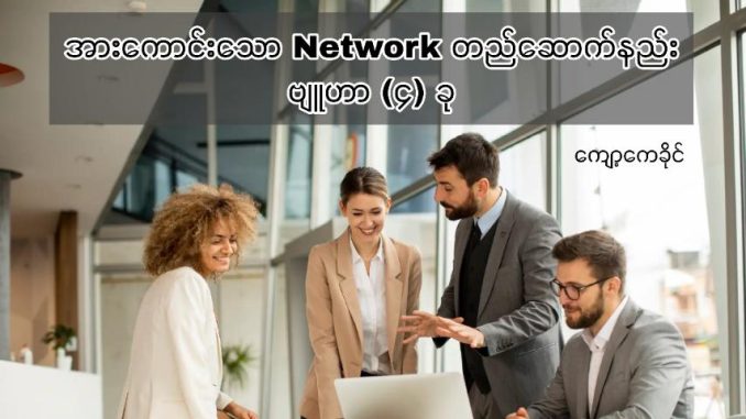 အားေကာင္းတဲ့ Network တစ္ခုဆိုတာ ေန႔ခ်င္းညခ်င္း တည္ေဆာက္လို႔ မရပါဘူး။ အခ်ိန္ေပးၿပီး စိတ္ရင္းမွန္နဲ႔ ေပါင္းသင္းဆက္ဆံဖို႔ လိုအပ္ပါတယ္။ အထက္ပါ ဗ်ဴဟာ (၄) ခုကို အသုံးခ်ၿပီး အစီအစဥ္တက် Networking လုပ္ေဆာင္သြားမယ္ဆိုရင္ သင့္ရဲ႕ အသက္ေမြးဝမ္းေက်ာင္း ခရီးလမ္းမွာ မေမွ်ာ္လင့္ထားတဲ့ တံခါးခ်ပ္ေတြ ပြင့္လန္းလာမွာ အေသအခ်ာပါပဲ။