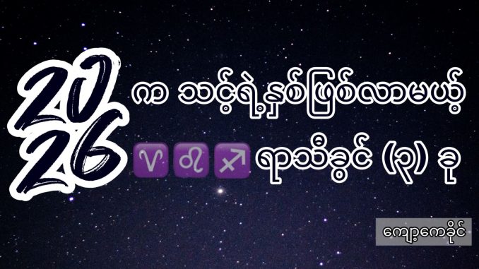 နက္ခတ်ဗေဒင်ပညာရှင် Elizabeth Brobeck ရဲ့ အဆိုအရ ၂၀၂၆ ခုနှစ်ဟာ ရာသီခွင်သုံးခုအတွက် ကံကောင်းမယ့်နှစ် ဖြစ်ပါတယ်။ သင်သာ ဒီရာသီခွင်တွေထဲက တစ်ခုဖြစ်ရင် ၂၀၂၆ ဇန်နဝါရီလ စတာနဲ့ အရာရာဟာ အကောင်းဘက်ကို စတင်ပြောင်းလဲလာလိမ့်မယ်လို့ ပညာရှင်က ဗီဒီယိုတစ်ခုမှာ ရှင်းပြခဲ့ပါတယ်။အခက်အခဲတွေ၊ စိန်ခေါ်မှုတွေ ရှိနေပေမယ့်လည်း ကိုယ့်ဘဝကို ပိုကောင်းအောင် ပြောင်းလဲဖို့ ကြိုးစားအားထုတ်ခဲ့သူတွေအတွက် ၂၀၂၆ ဟာ ကောင်းချီးမင်္ဂလာတွေကို ကတိပေးထားပါတယ်။ ပိုကောင်းတဲ့ အလုပ်အကိုင် အခွင့်အလမ်းတွေကနေ ဆက်ဆံရေးတွေ ပိုမိုတိုးတက်လာတာအထိ၊ သင်သာ ဒီရာသီခွင်တွေထဲက တစ်ခုဆိုရင် ၂၀၂၆ ဟာ သင့်အတွက် အကောင်းဆုံးနှစ် ဖြစ်လာဖို့ ပုံဖော်နေပါတယ်။